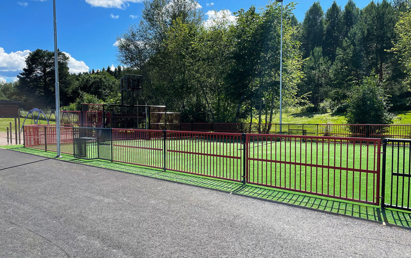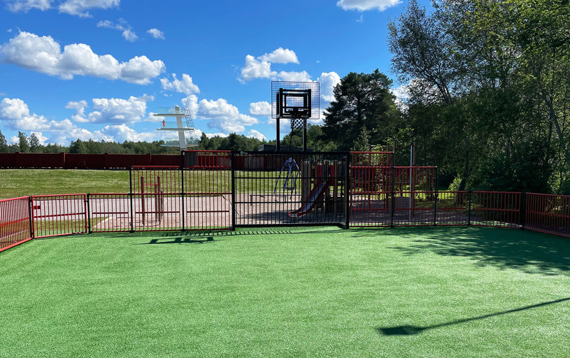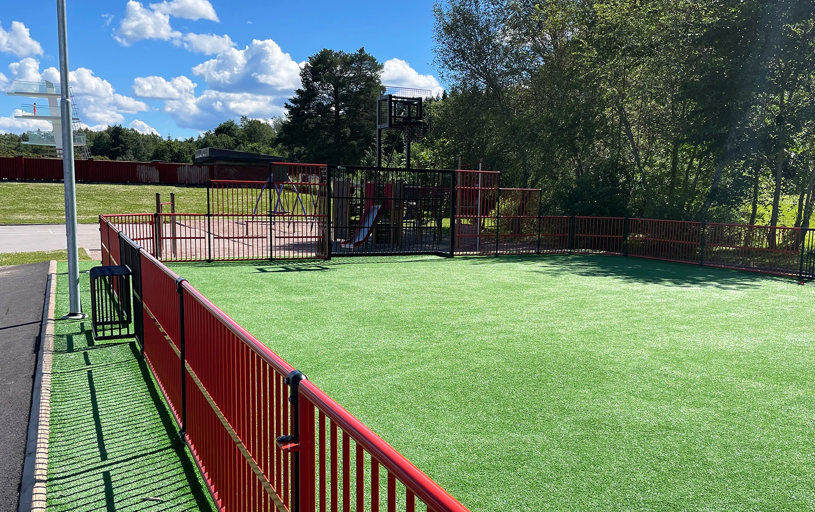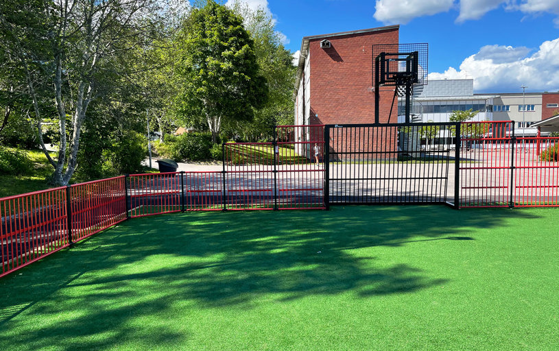Denne THOR multibane er en af vores mest populære stålbaner. Den fås i flere størrelser, så du kan altid finde en, der passer til dine behov. Sofiedalsskolan i Valbo valgte størrelsen 24,5 x 12 meter og tilføjede basketballtoppe oven på målene på de korte sider.