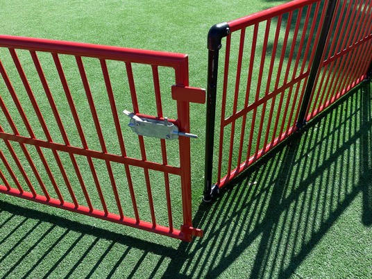 Først overvejede de en neutral farve, men skiftede så til denne fantastiske sort/røde kombination. Multibanen er desuden monteret i bøsninger, så den kan flyttes, da der måske kommer en bygning på stedet i fremtiden.