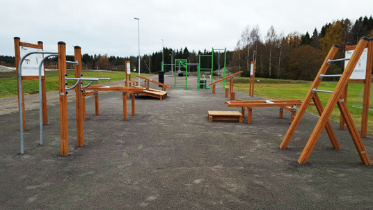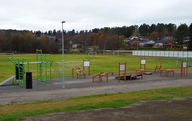 Det udendørs fitnesscenter gør idrætsanlægget endnu mere komplet. Det er her, folk i Härnösand kommer, når de vil motionere, træne fodbold eller jogge en løberunde.
