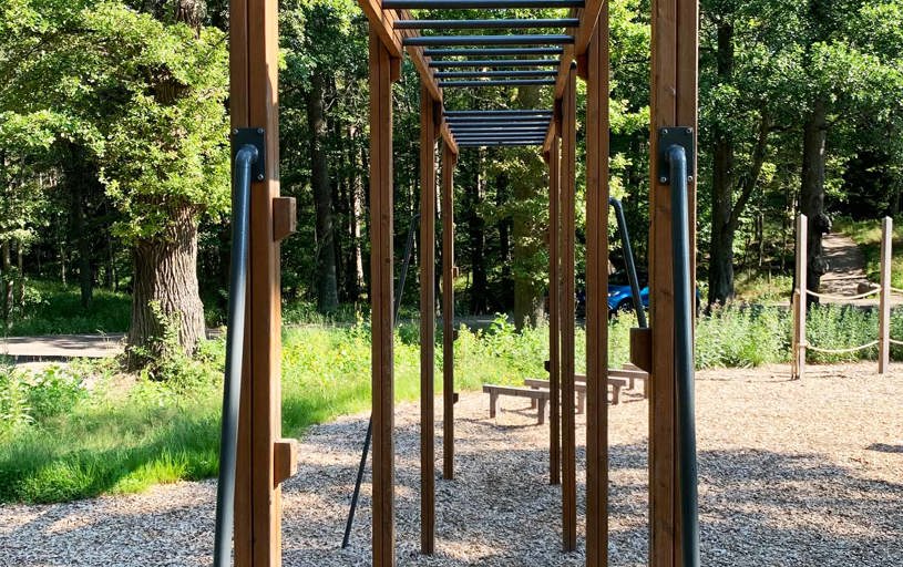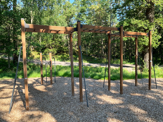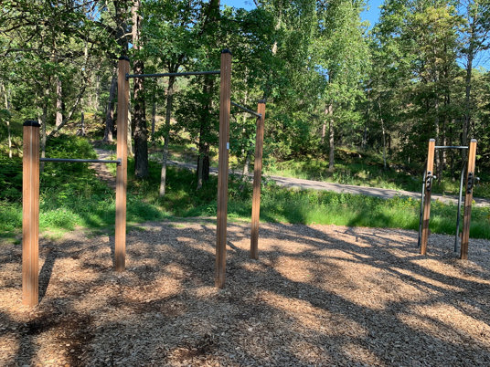 Outdoor fitness-området ligger i en lysning ved Nyckelviken naturreservat i Sverige. Det giver motionister i området muligheden for at starte eller afslutte et joggingpas med opvarmning, styrke- og kredsløbstræning. Træn, stræk, slap af og drik noget vand. Godt arbejde!