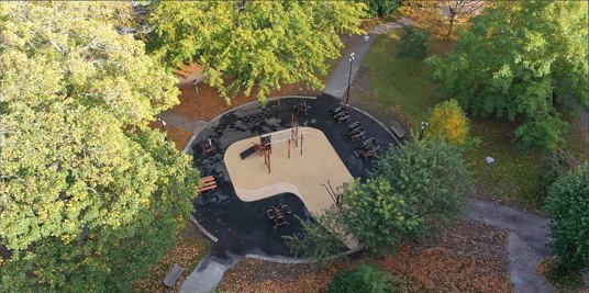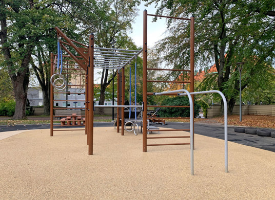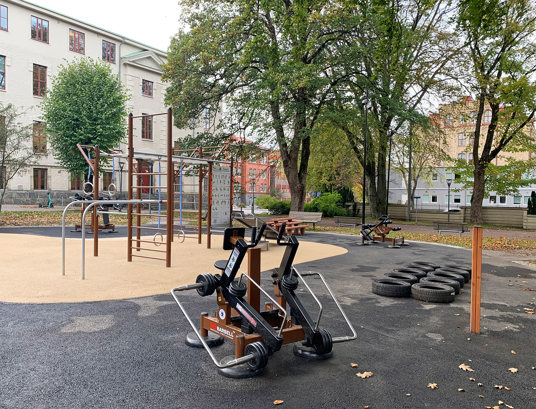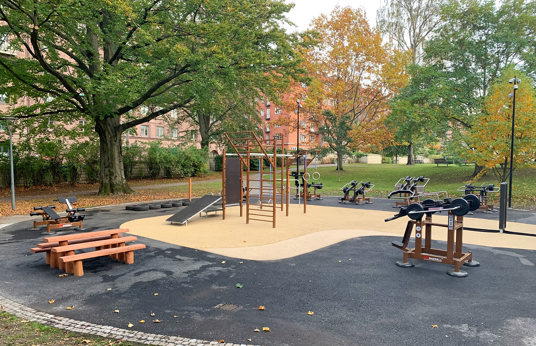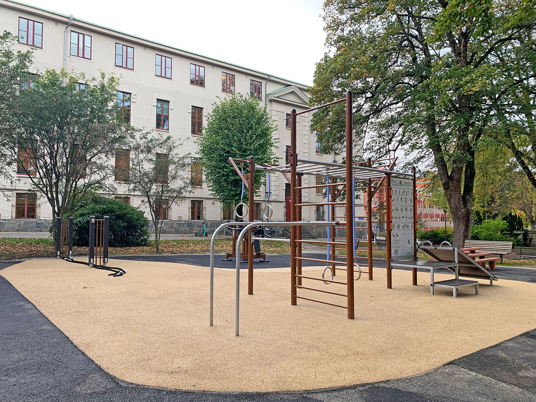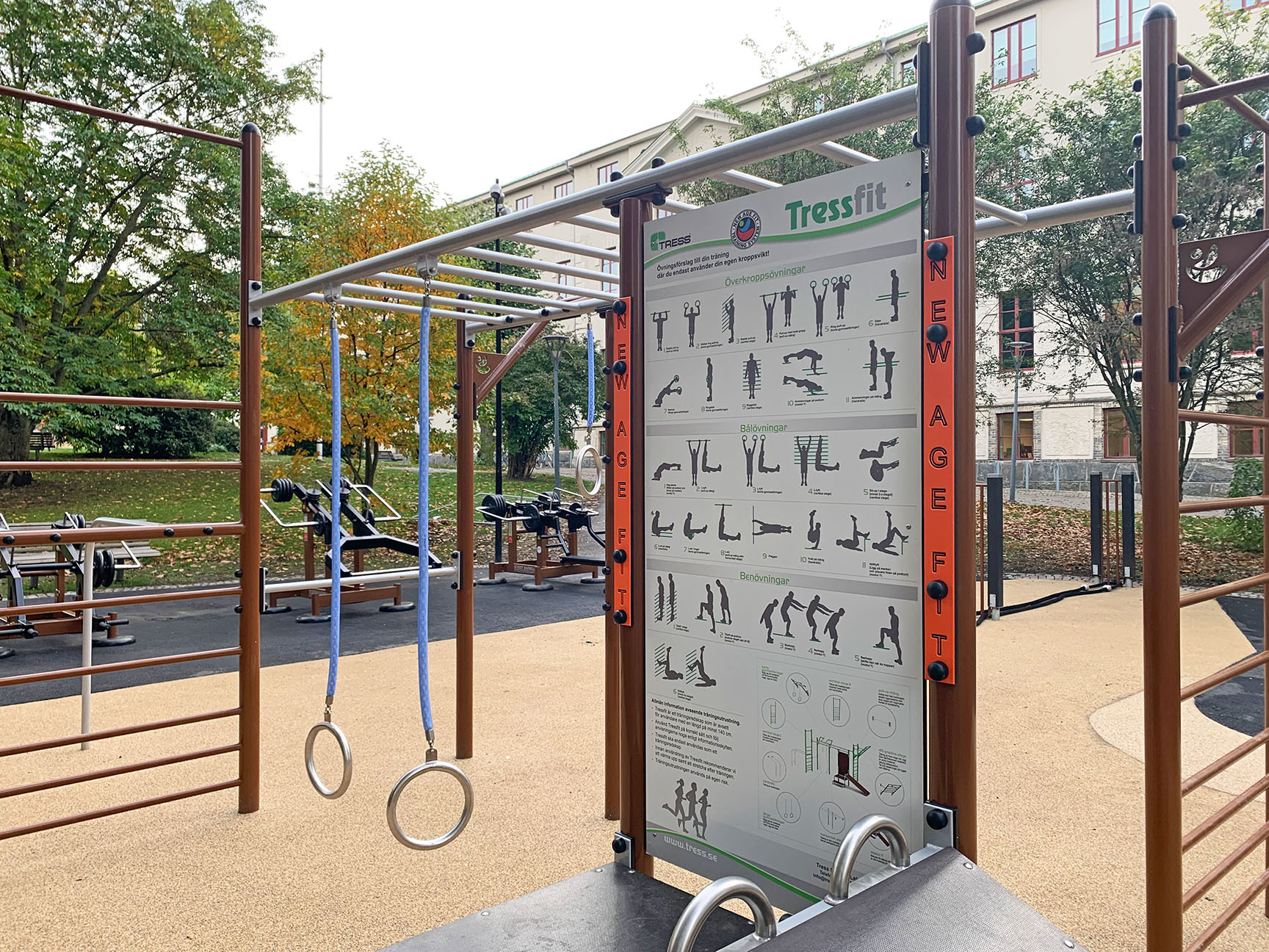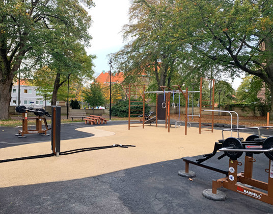 Udstyret er valgt med omhu, så alle kan finde deres træningsniveau og variere øvelserne. I centrum står TRESSfit styrketræningsanlægget, hvor der kan udføres skånsom træning med egen kropsvægt. Der blev desuden placeret forskellige styrketræningsmaskiner rundt omkring, hvor vægtene justeres i et lukket og sikkert system. En omgang her og du har trænet styrke med hele kroppen. Med frisk luft i lungerne og ny ilt i hjernen har du nu bedre forudsætninger for at yde dit bedste resten af dagen.