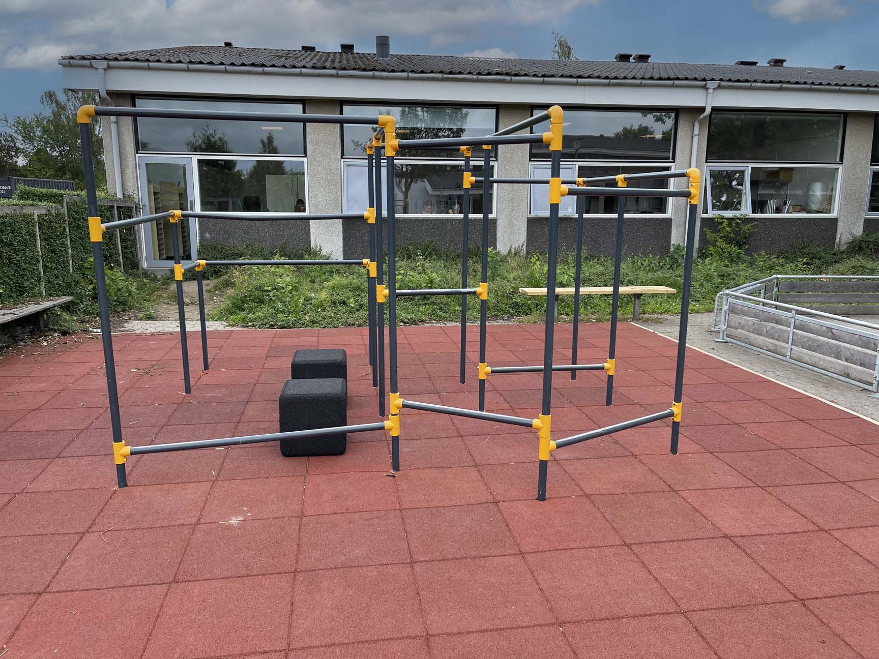 På Mølholm Skole i Vejle kan eleverne nu bruge frikvarteret aktivt på det nye TRESSfit-anlæg til outdoor fitness eller det geniale Monkey Rails-stativ til parkour. Begge dele bruges også som en del af idrætsundervisningen – og giver gode muligheder for forskelligartede udfordringer af elevernes motoriske evner.