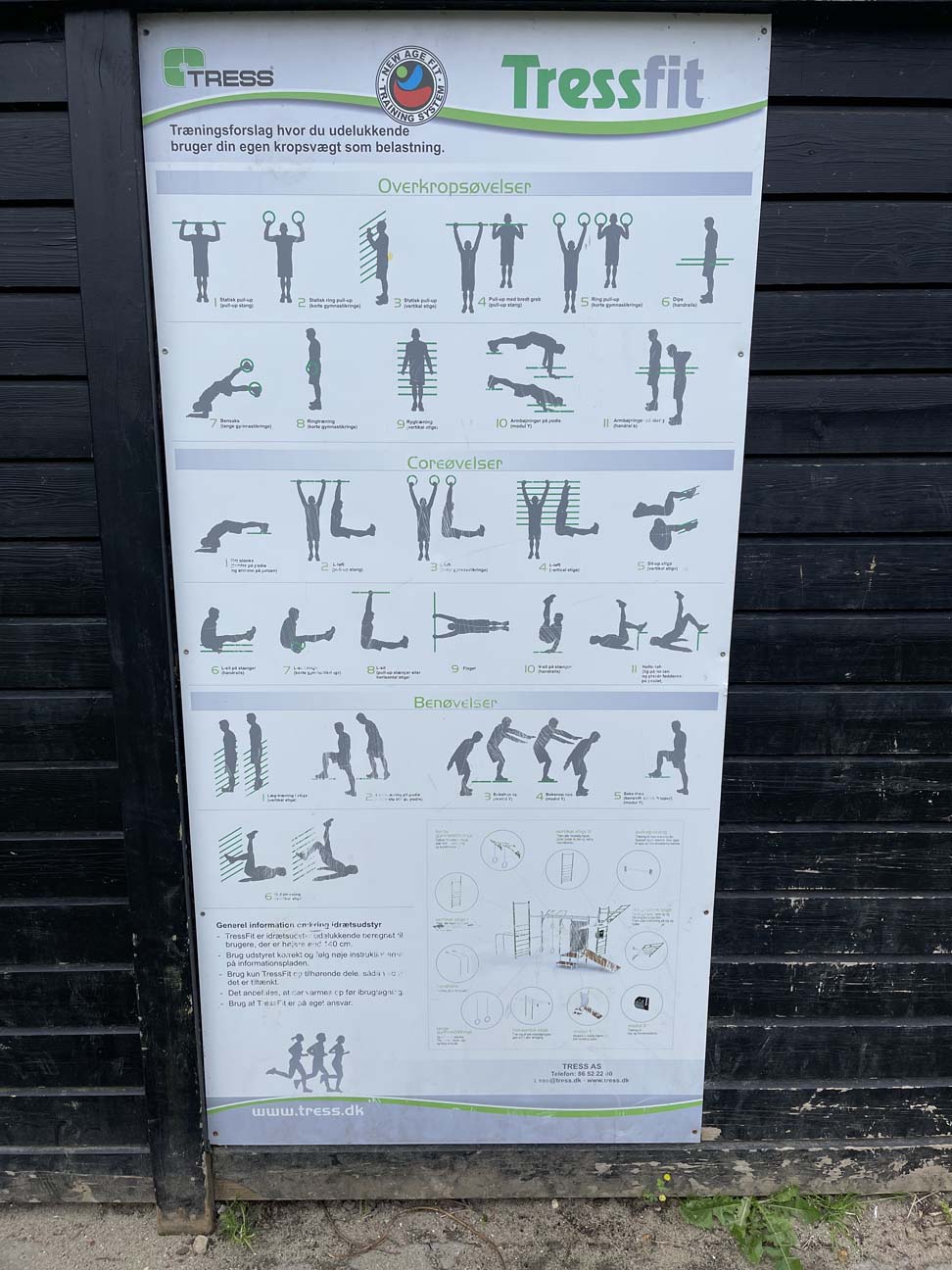 Faldsikring bestående af kunstgræs med shockpad under TRESSfit styrketræningsanlægget samt gummifliser under parkourstativet giver minimal vedligeholdelse og sørger for god sikkerhed.
