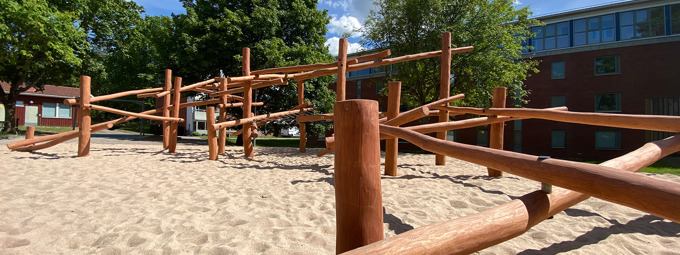 Det lille søområde midt i bebyggelsen har fået nyt liv med tre enkle bænke i robinia – og det har gjort en større forskel, end man måske lige skulle tro. Nu er her plads til både ro og nærvær. Man kan slå sig ned med en kop kaffe, nyde udsigten eller falde i snak med en nabo. Bænkene falder naturligt ind i det grønne område og passer perfekt ind i den rolige stemning uden at tage opmærksomhed fra landskabet omkring bænkene.