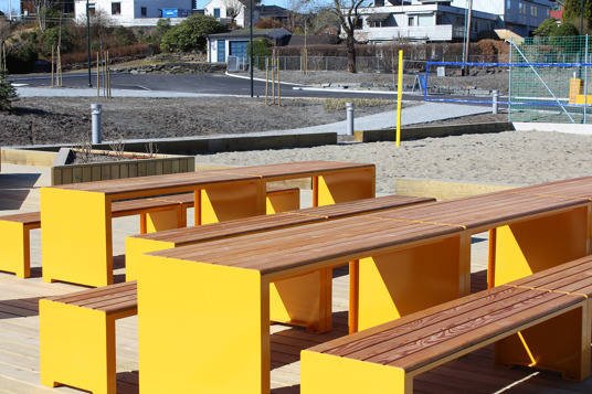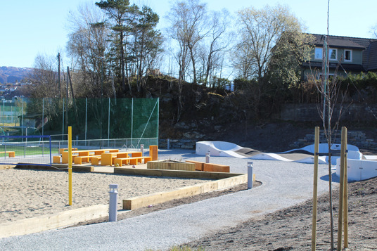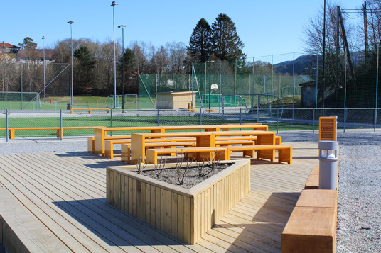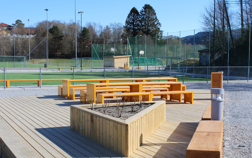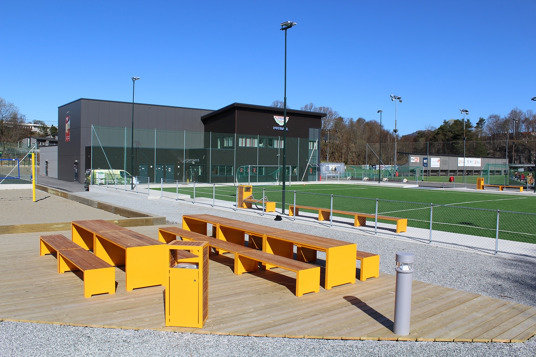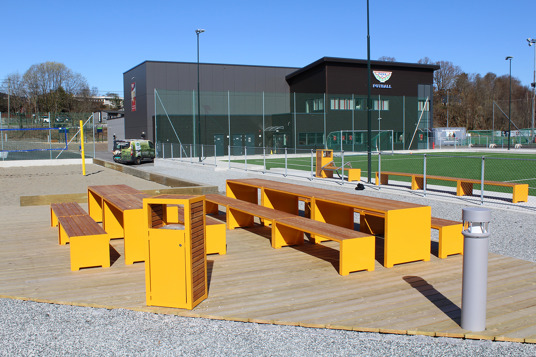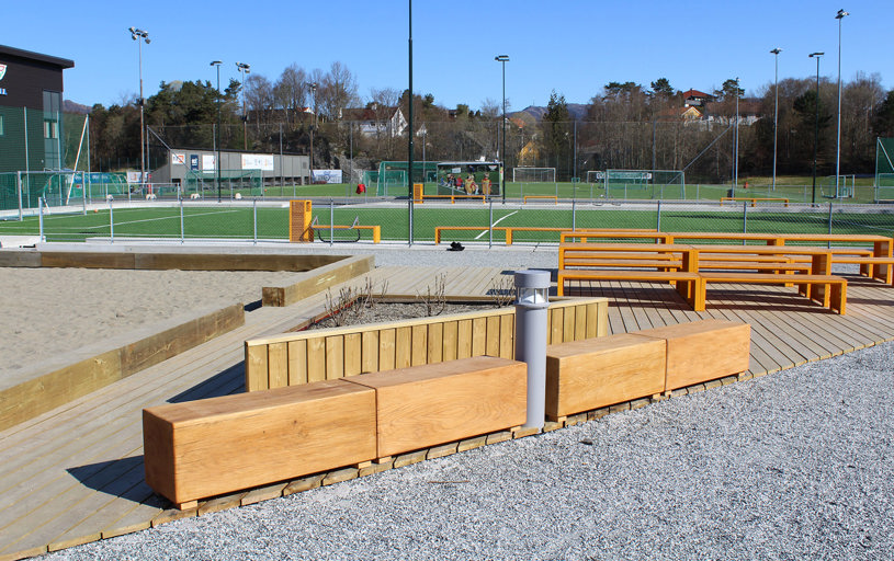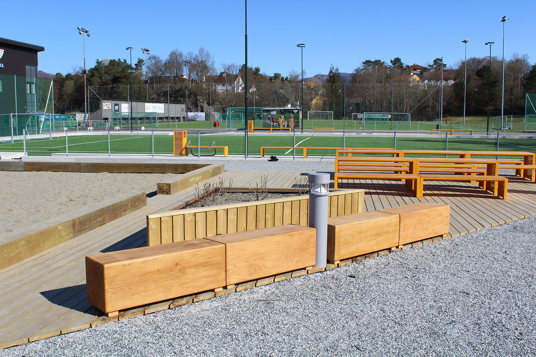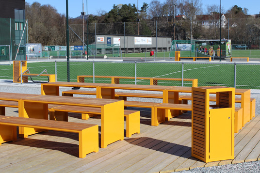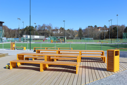 I 2023 blev Nesttun Idrettsplass i Bergen totalt opgraderet. Her har TRESS leveret et stort antal bænke, borde, cykelstativer og skraldespande, som er med til at skabe en helhed på idrætsanlægget. Her kan store og små samles i områderne omkring aktiviteterne eller tage en slapper på bænkene under fodboldtræningen. Kundens eget ønske om RAL-farve og de fine lærkedetaljer resulterede i parkmøbler fra Mobilis Design, som giver et stilrent blikfang på Nesttun Idrettsplass.