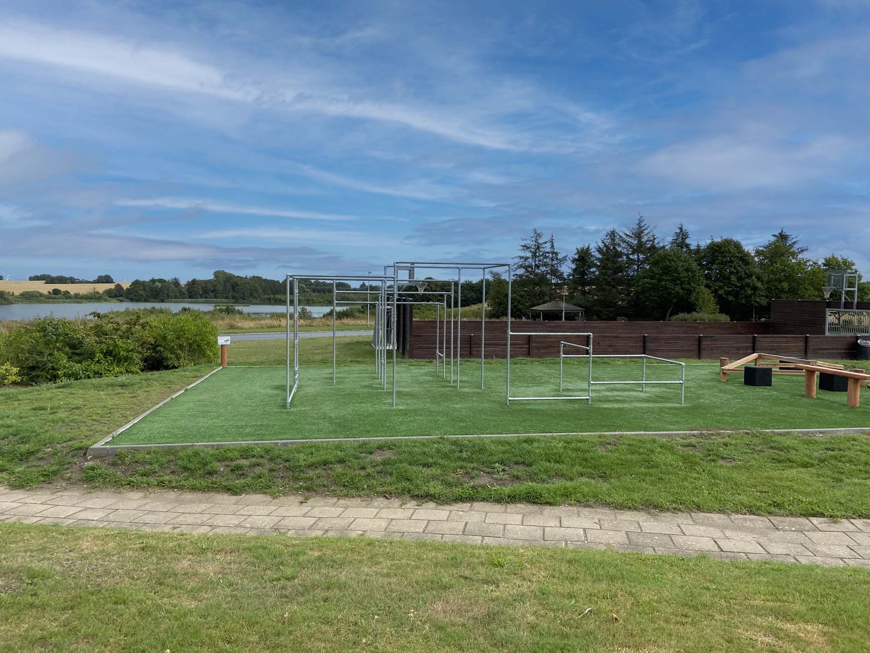 Områdets mange træelementer er naturligt smukke og nemme at vedligeholde – og passer perfekt til Børnebyens placering med udsigt over den lokale sø.