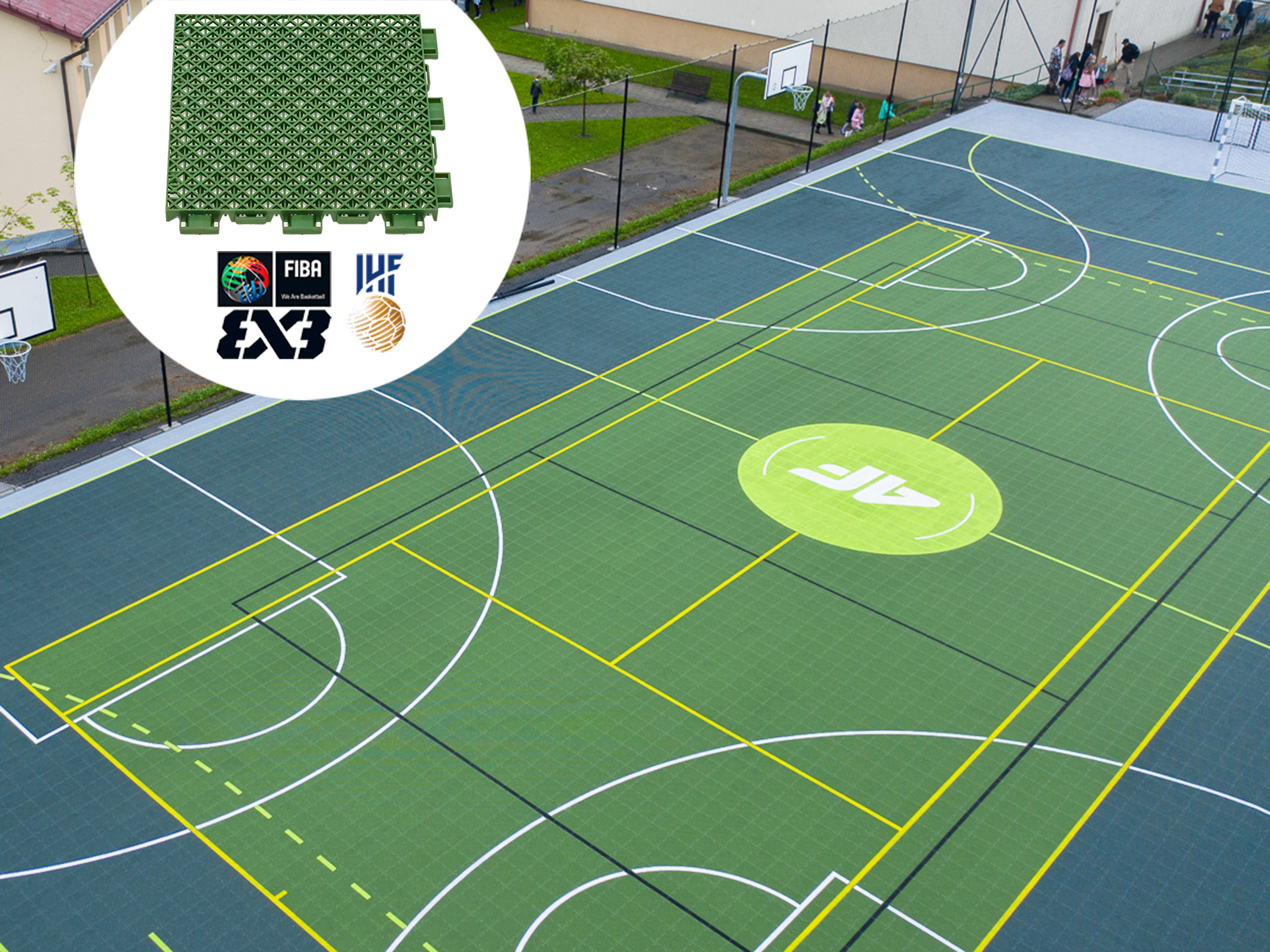 Courty kan bruges til mange forskellige sportsgrene. Gulvet består af 27 x 27 cm plader, som klikkes sammen til en bane i den ønskede størrelse. Pladerne er: