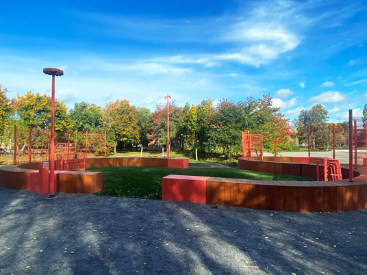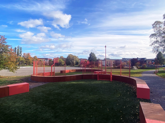 Parken i Märsta i Sverige gennemgik i 2022 en total makeover. Parken byder nu på rekreation med grillfaciliteter og siddepladser, gang- og cykelstier, ny legeplads for de mindre børn og udendørs fitness for unge og voksne. Sidst – men ikke mindst – stod den længe ventede InsideOut multiarena leveret af TRESS færdig som prikken over i'et.