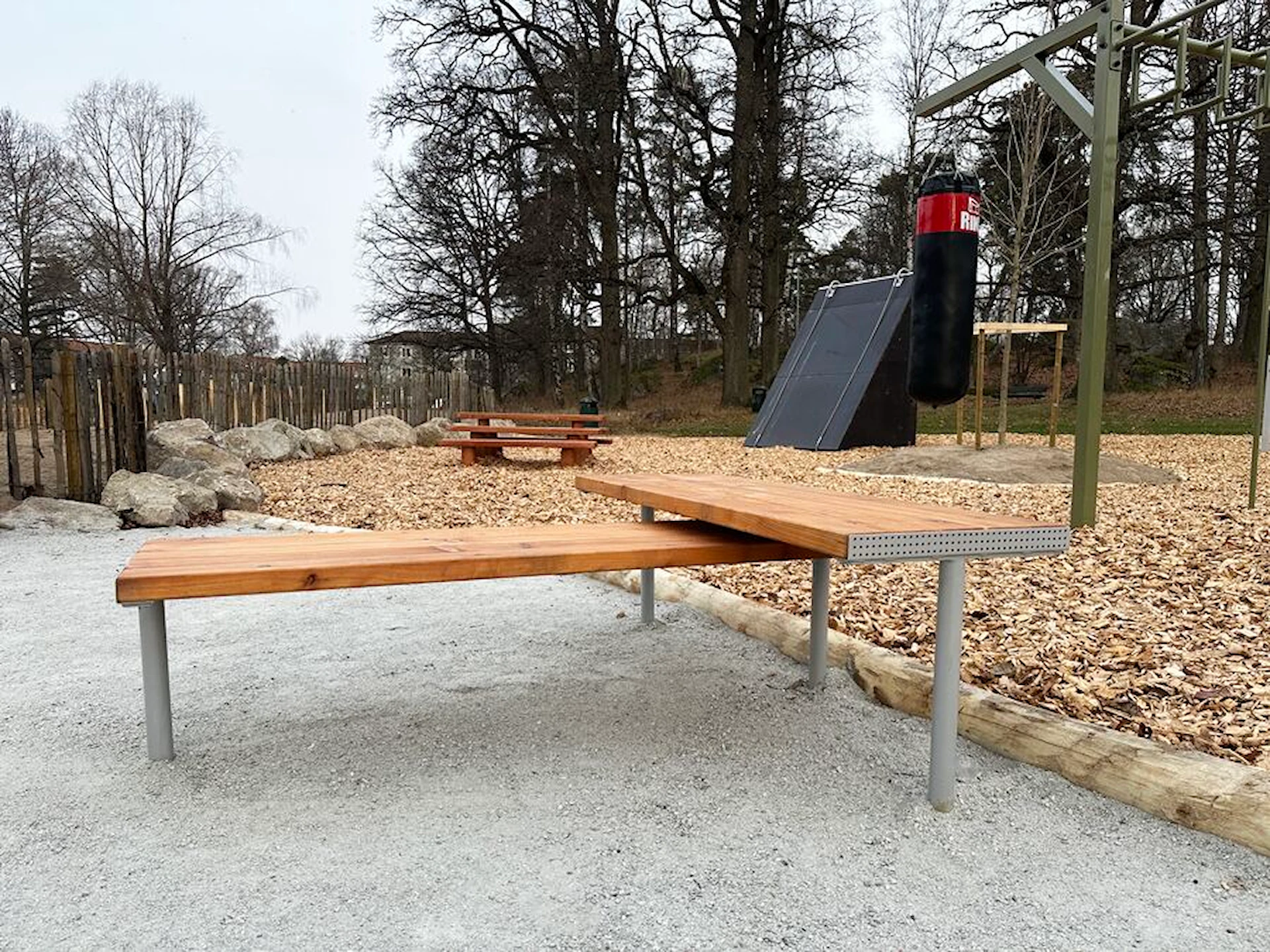 - Træ : Træ er et naturmateriale og bør tilses jævnligt for revner, splinter og generel slitage. Rengør med en blød børste eller fugtig klud. For at forlænge levetiden anbefales det at behandle træet med egnet træbeskyttelsesmiddel efter behov og altid sikre, at kontaktflader mod jord holdes fri for konstant fugt.