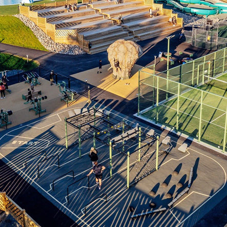 For at øge trygheden og gøre området mere anvendeligt i de mørke måneder kan træningsområderne suppleres med tag og belysning. Desuden er hver maskine udstyret med tydelige grafiske instruktioner, der hjælper brugerne med at udføre øvelser korrekt. Mange maskiner har desuden QR-koder, som kan scannes for at få adgang til træningsvideoer og yderligere vejledning – det gør det sikkert for alle at bruge maskinerne, også hvis de er nybegyndere eller bare ikke har prøvet en given maskine før.