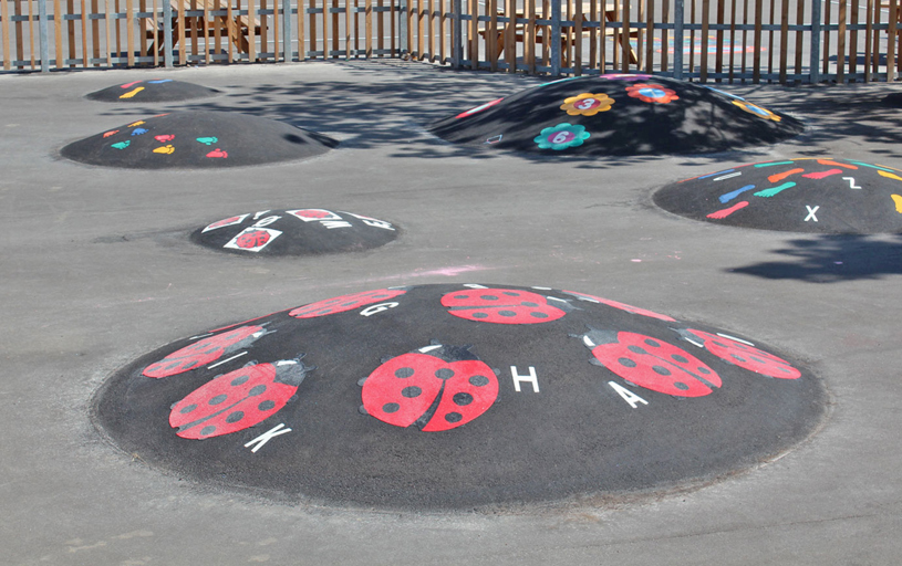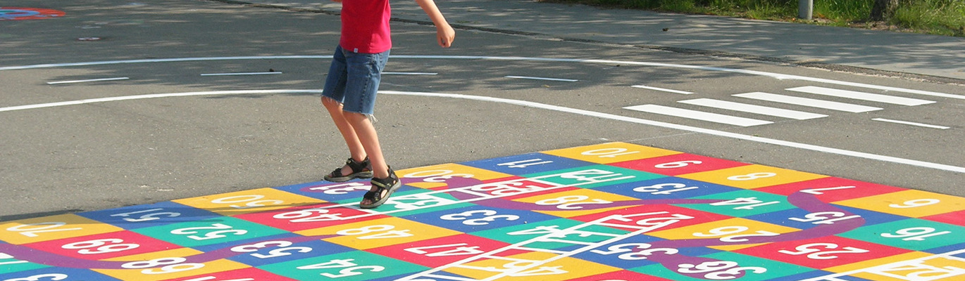 Mørke og kedelige overflader er ikke specielt inspirerende for børn at lege på. Så hvorfor ikke gøre skolegården eller legepladsen til noget særligt med kreative asfaltdekorationer, som sprudler af farver og liv.