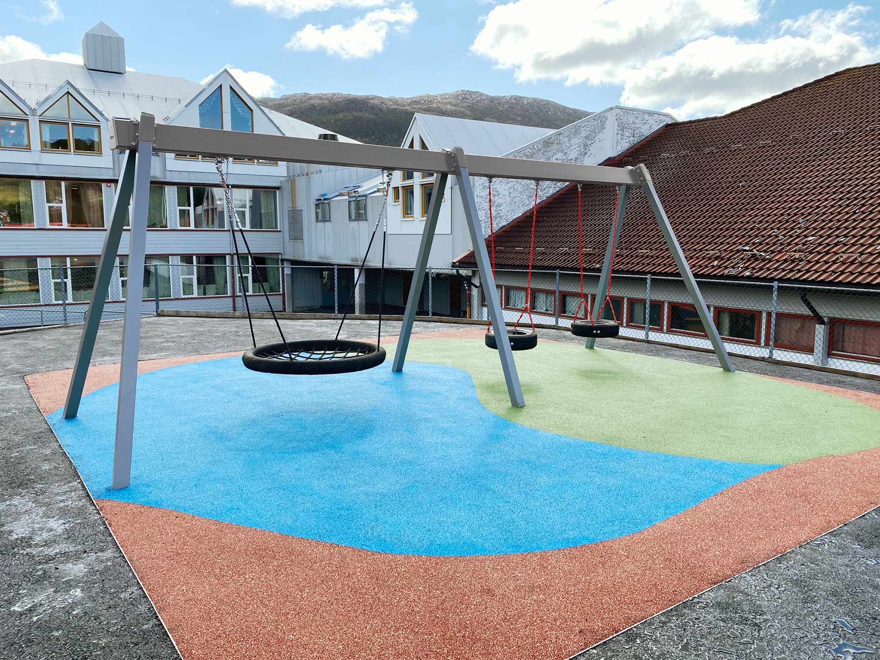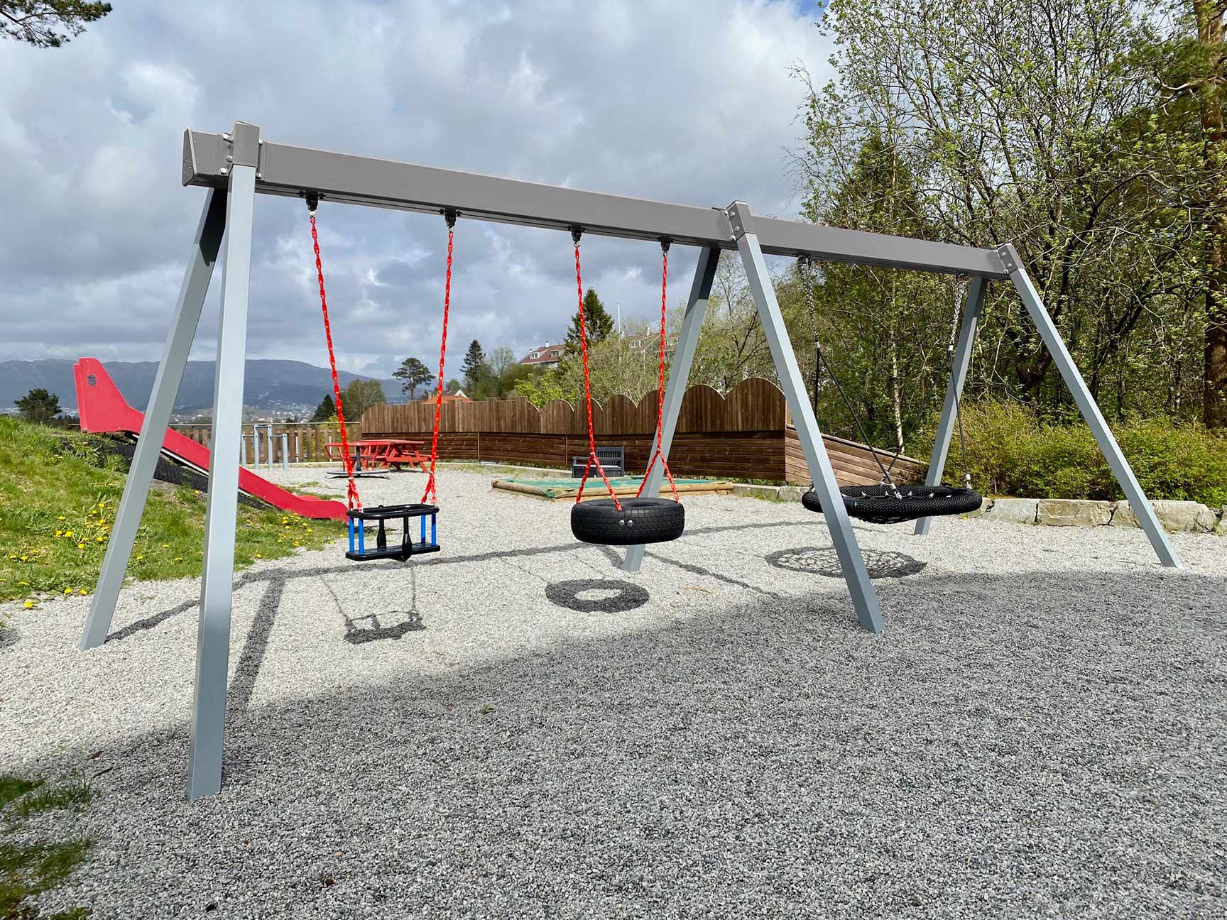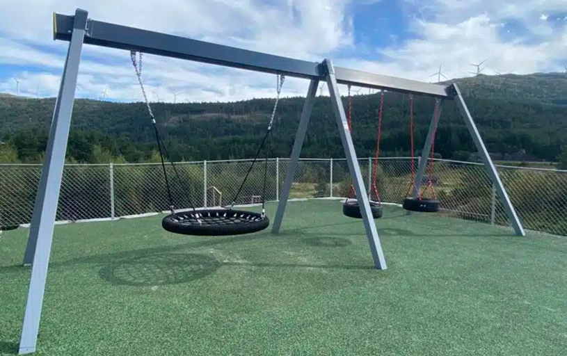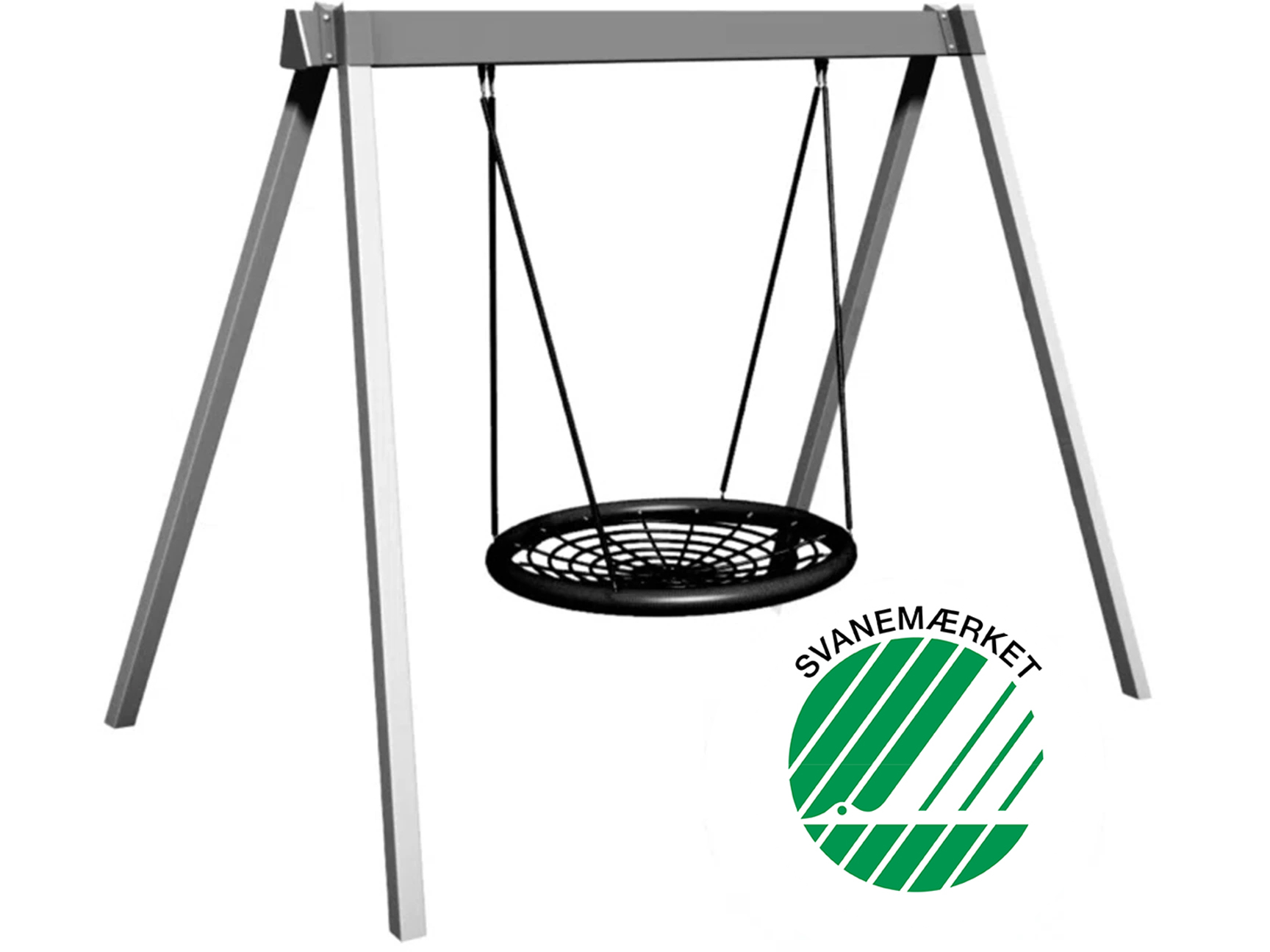 Svanemærkede legeredskaber og gyngestativer skal bestå af en høj andel genbrugsmateriale af plast og metal eller metal produceret med lavere klimabelastning. Alumina Gyngestativerne er fremstillet i overensstemmelse med EN 1176, produceret i miljøvenlige og genanvendelige materialer og leveres i vedligeholdelsesfrit pulverlakeret aluminium.