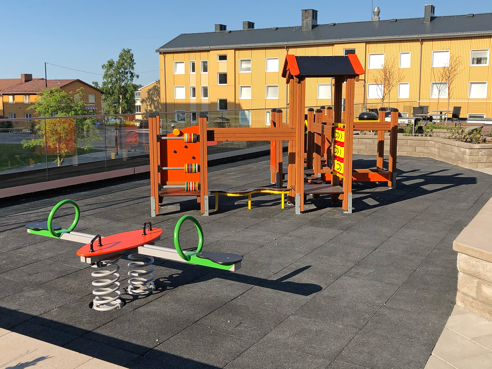 Vi tilbyder flere forskellige typer af tilgængelige underlag såsom gummibelægning, kunstgræs, træflis, barkflis eller faldsikringsfliser. Underlaget kan bruges overalt i dit udendørs miljø – fx på legepladsen eller til outdoor fitness.